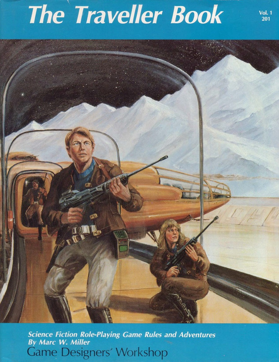 The Traveller Book consolidates the core rules (Books 1-2-3) into a single 8.5 x 11 book and adds additional material on how-to-play the game. It also adds the short adventures Shadows (from Double Adventure 1) and Exit Visa.